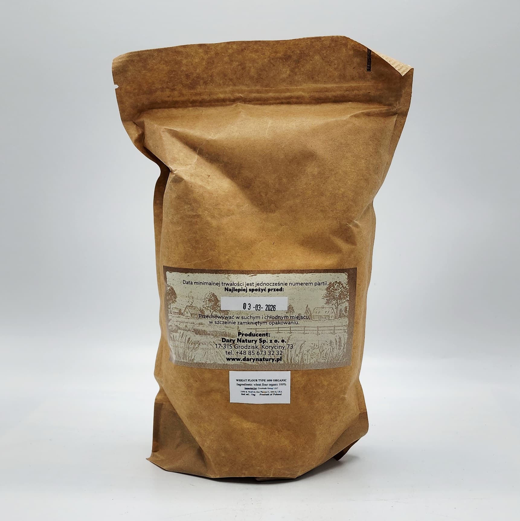 Organic Wheat Flour 1kg – Dary Natury Type 1050 wheat flour is recommended for pizza dough, homemade baking, bread, and pasta production.