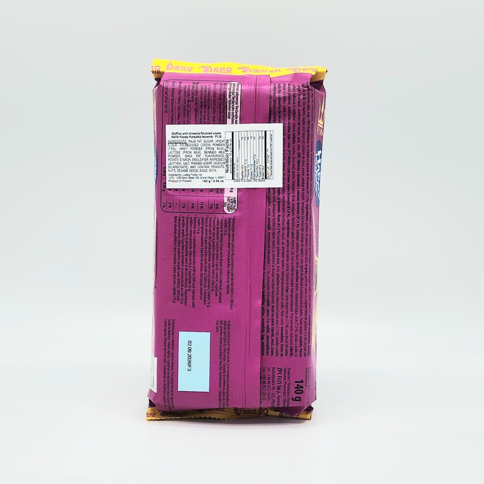 Happy Karpatka Brownie 140g is a unique product that will delight every sweet tooth. Karpatka are delicious wafers shaped like classic Carpathian cakes, filled with a cream that has the intense flavor of brownie batter.