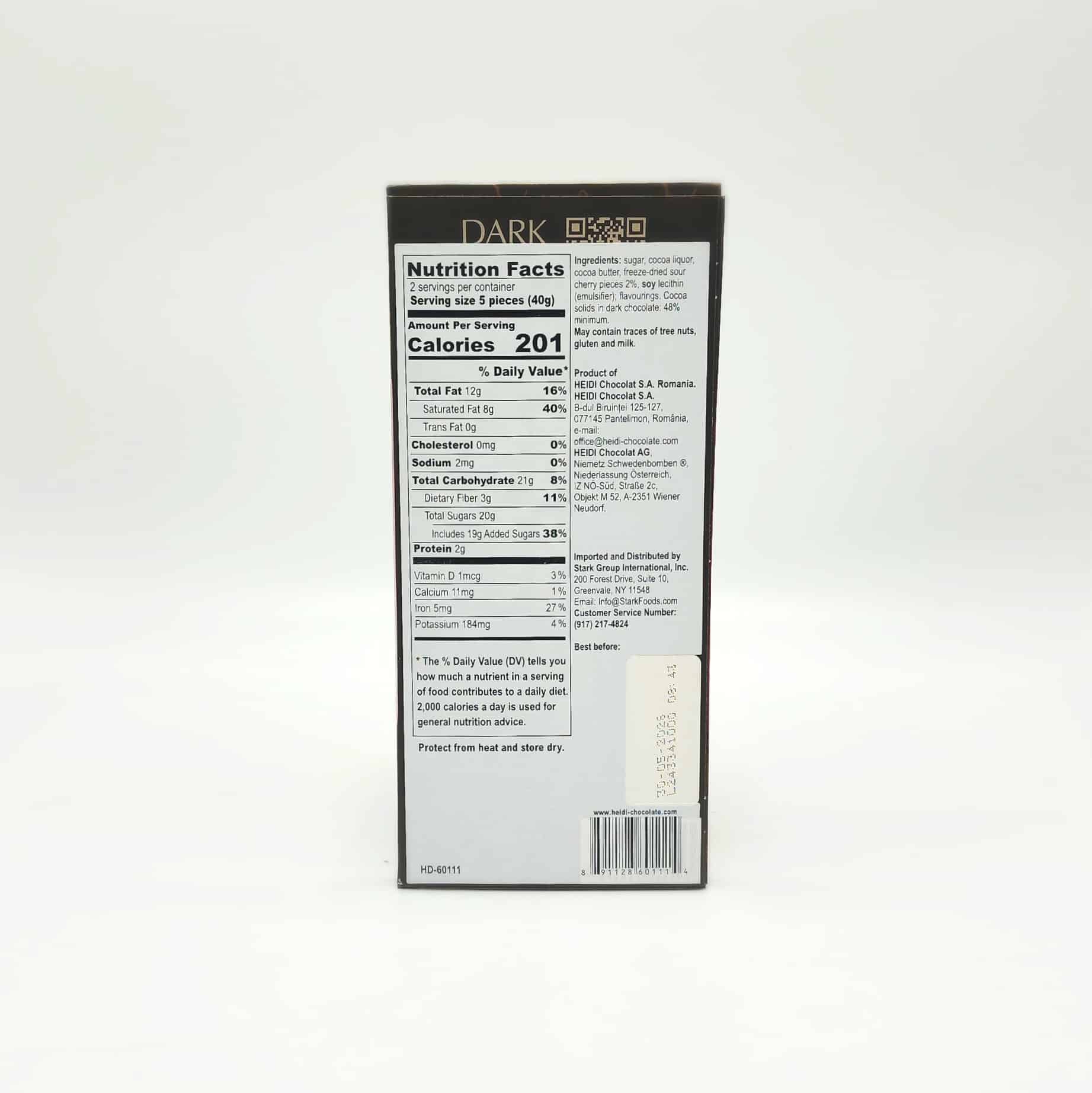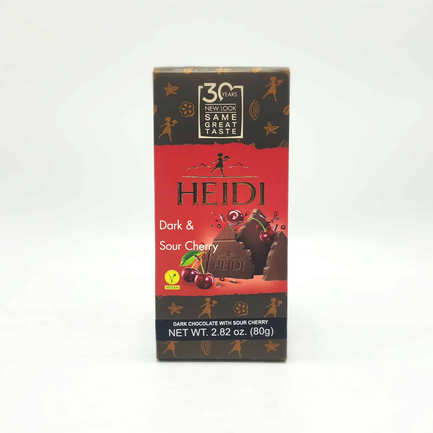 Enjoy a bold and fruity twist with Heidi Dark Sour Cherry! This vegan dark chocolate bar is blended with tangy sour cherries, creating a perfectly balanced treat with rich cocoa and a bright, tart finish.