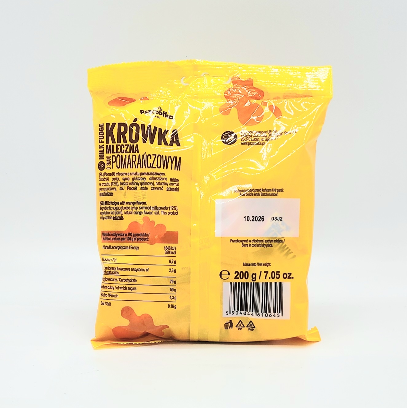 Milk fudge with orange flavor 200g PSZCZÓŁKA This velvety candy with a delicate flavor combines natural ingredients of the highest quality. The mild milky taste will remind you of carefree moments from your childhood.