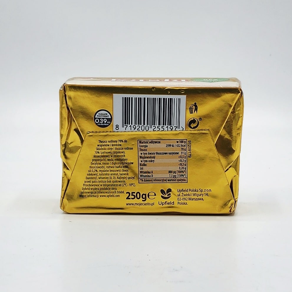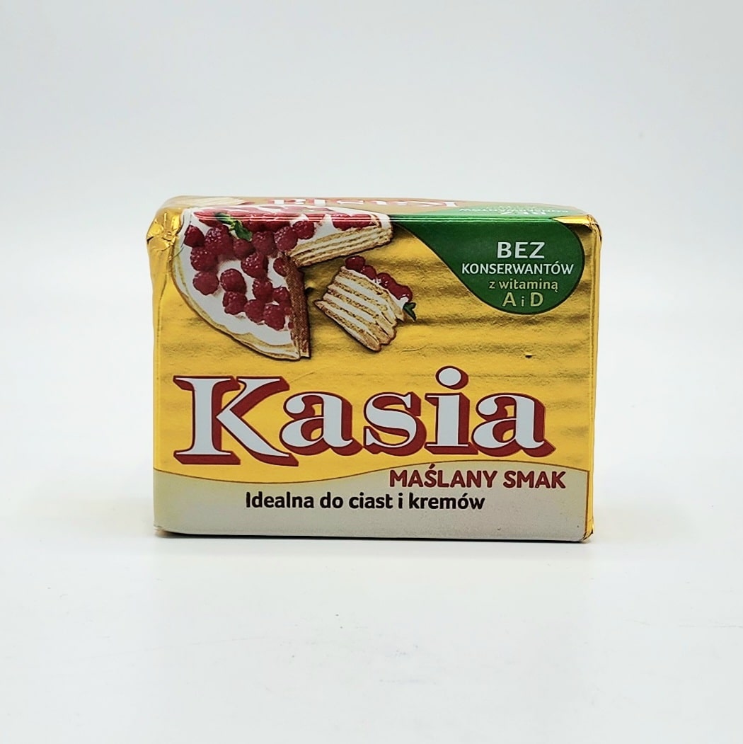 Kasia margarine has been a staple in many homes for years, helping to create a variety of baked goods. It’s a top-quality product that Poles eagerly choose. Its 75% fat content pairs perfectly with all products. Kasia margarine allows you to create excellent-quality cakes, whether you’re a seasoned chef or just starting out in the kitchen. Each 250g stick of margarine is easily divisible.