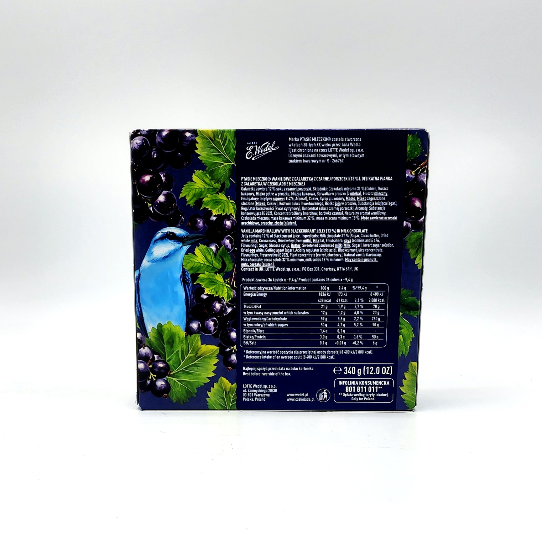 Let yourself be surprised by this new version of E. Wedel’s iconic sweet! Delicate, fluffy vanilla foam meets refreshing blackcurrant jelly, all wrapped in velvety milk chocolate. This harmonious combination of sweetness, fruity notes, and a chocolate finish makes each cube a small work of art. Perfect for a moment of pleasure you want to celebrate – alone, with loved ones, or with a cup of your favorite coffee.